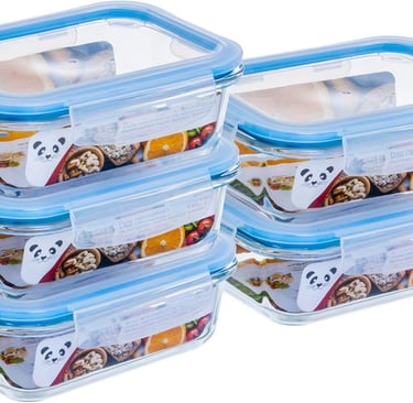 1. Gato Panda – Kit 5 Potes de Vidro Retangular com Tampa Hermética 640ml